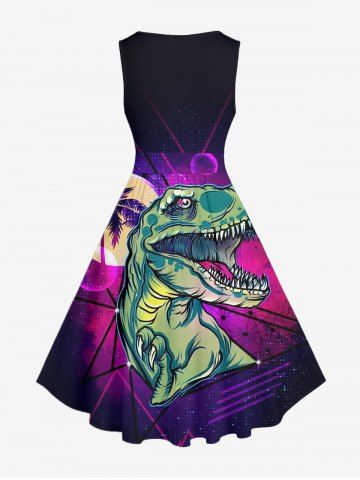 Plus Size Coconut Tree Moon Dinosaur Galaxy Print Hawaii Vintage Swing A Line Dress - Concorde - 3x