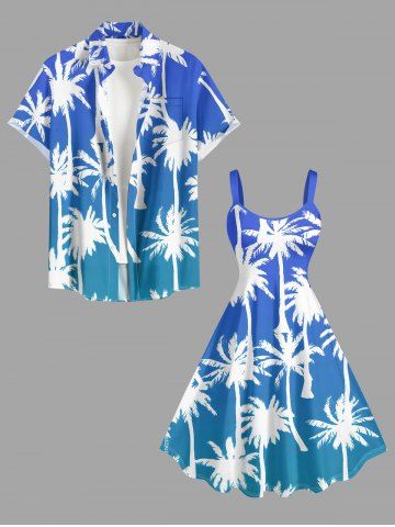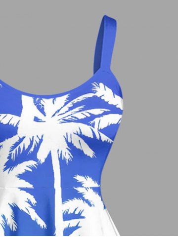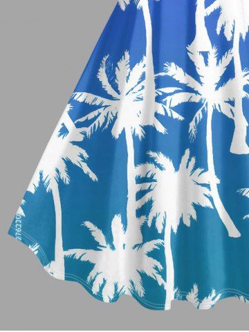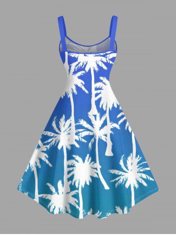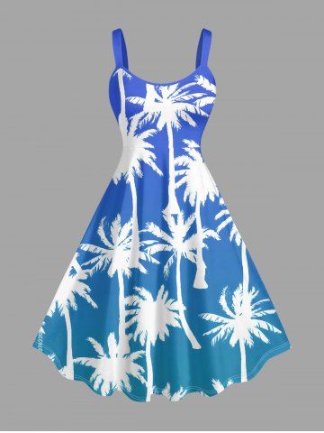 Plus Size Coconut Tree Ombre Print Hawaii A Line Dress - Bleu Ciel - Bleu Ciel