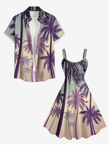 Plus Size Coconut Tree Ombre Print Hawaii Tank Dress - Café Lumière - 3x
