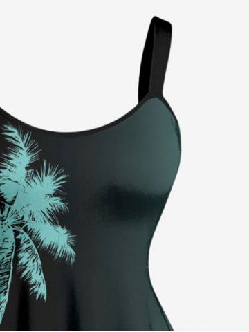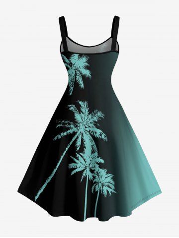 Plus Size Coconut Tree Ombre Print Hawaii Tank Dress - Turquoise Foncée - S