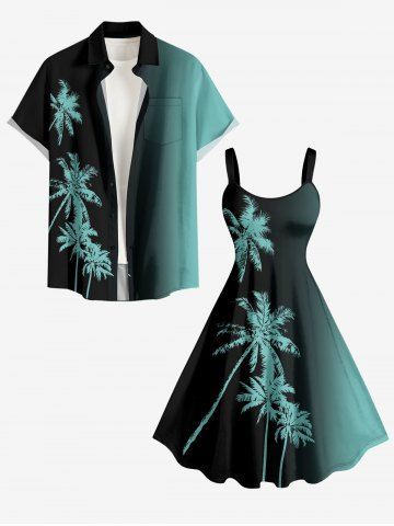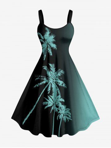 Plus Size Coconut Tree Ombre Print Hawaii Tank Dress - Turquoise Foncée - L