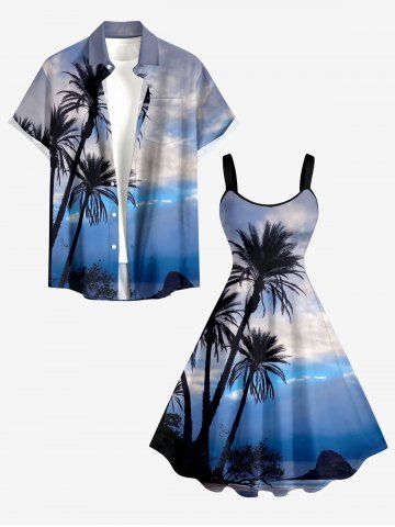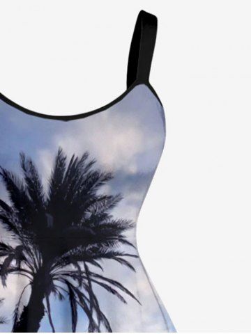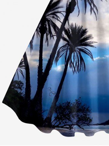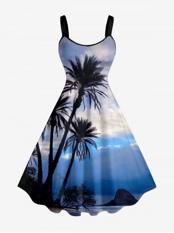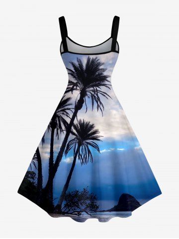Plus Size Coconut Tree Ombre Sky Print Hawaii A Line Dress - Bleu Ciel - Bleu Ciel