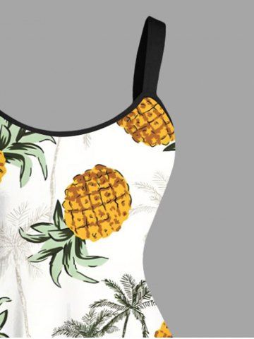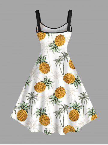 Plus Size Coconut Tree Pineapple Print Hawaii A Line Tank Dress - Blanc - Blanc