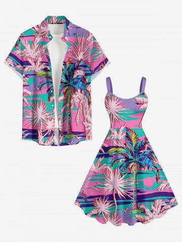 Plus Size Coconut Tree Plant Print Hawaii A Line Dress - Violet Lavande - 3x