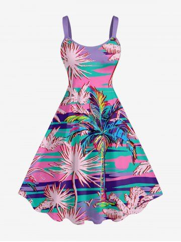Robes Graphiques > Plus Size Coconut Tree Plant Print Hawaii A Line Dress