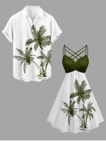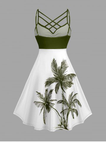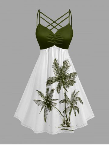 Robes Graphiques > Plus Size Coconut Tree Print Hawaii Ruched Crisscross Strappy A Line Cami Dress