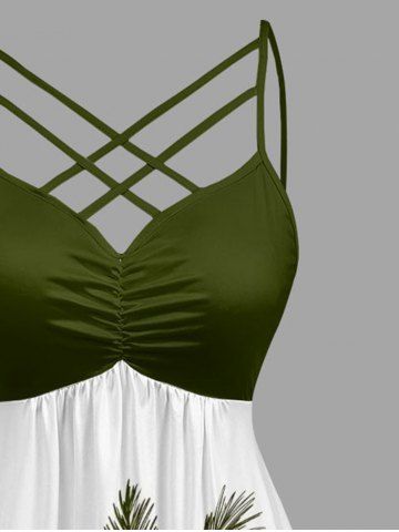 Plus Size Coconut Tree Print Hawaii Ruched Crisscross Strappy A Line Cami Dress - Plant Green - 4x