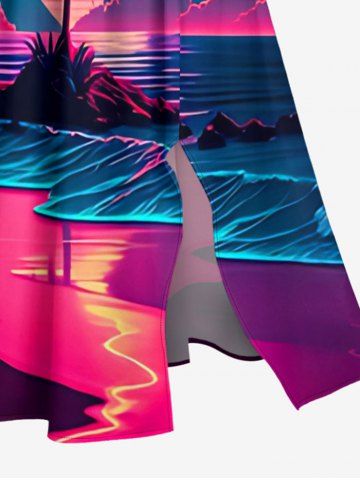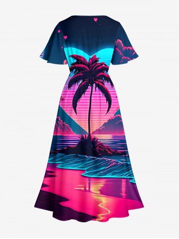 Robes Graphiques > Plus Size Coconut Tree Sea Ombre Heart Print Hawaii Split Pocket A Line Midi Dress