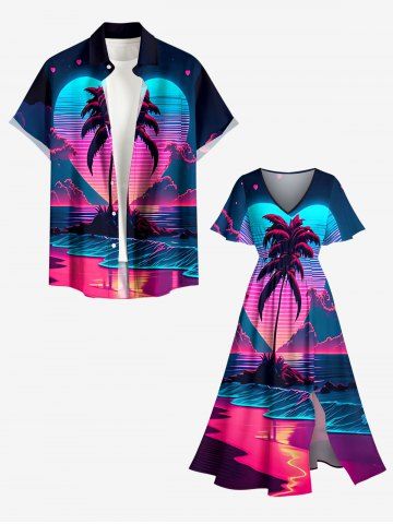 Robes Graphiques > Plus Size Coconut Tree Sea Ombre Heart Print Hawaii Split Pocket A Line Midi Dress