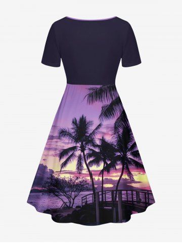 Robes Graphiques > Plus Size Coconut Tree Seascape Ombre Sky Print Hawaii Cinched A Line Dress