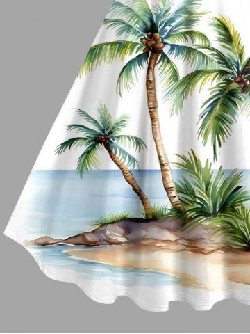 Robes Graphiques > Plus Size Coconut Tree Seascape Print Hawaii Tank Dress