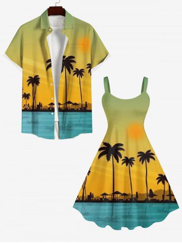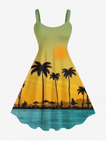 Robes Graphiques > Plus Size Coconut Tree Seascape Sunshade Ombre Print Hawaii Tank Dress