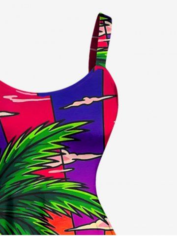 Plus Size Coconut Tree Sun Sea Waves Cloud Print Hawaii Tank Dress - Multi - Multi