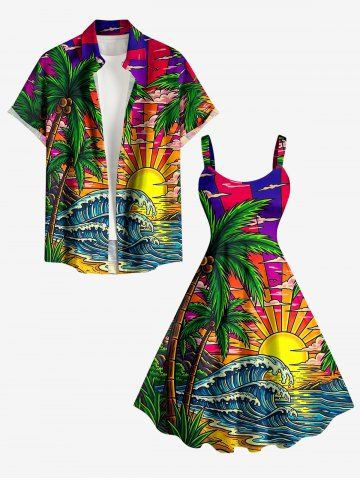 Robes Graphiques > Plus Size Coconut Tree Sun Sea Waves Cloud Print Hawaii Tank Dress
