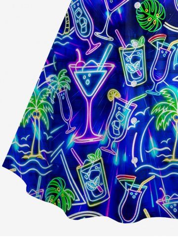 Robes Graphiques > Plus Size Coconut Tree Tropical Leaf Fruit Juice Print Ruched Lattice Crisscross Straps Hawaii Dress