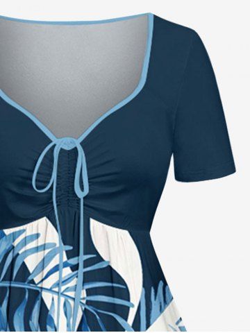 Plus Size Coconut Tree Tropical Leaf Sea Flower Print Hawaii Cinched A Line Dress - Cadetblue - 5x