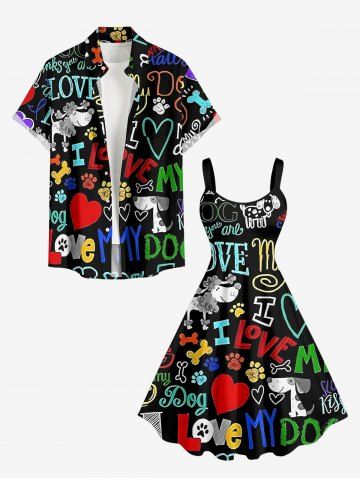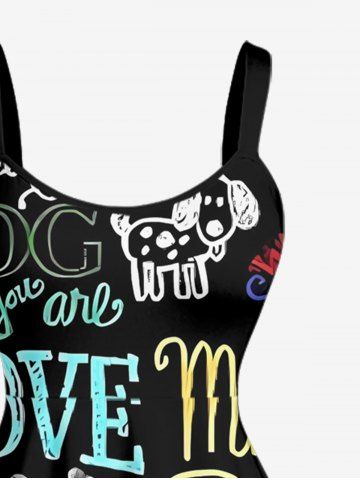 Plus Size Colorful Letters Dog Heart Paw Print Hawaii A Line Dress - Noir - Noir