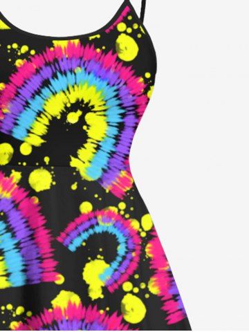 Plus Size Colorful Tie Dye Graffiti Painting Splatter Printed Hawaii High Low Asymmetric A Line Cami Dress - Multi-a - 5x