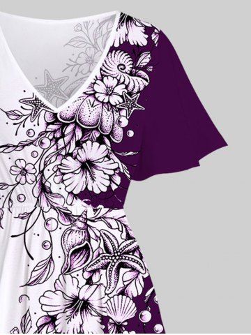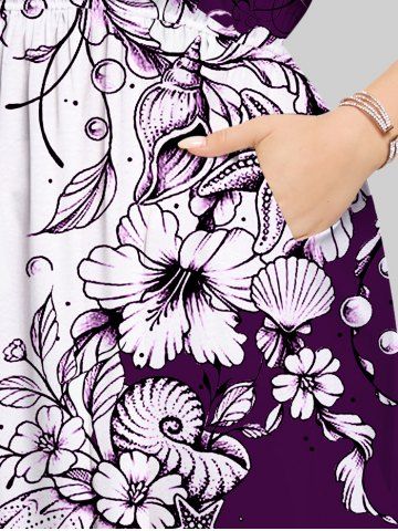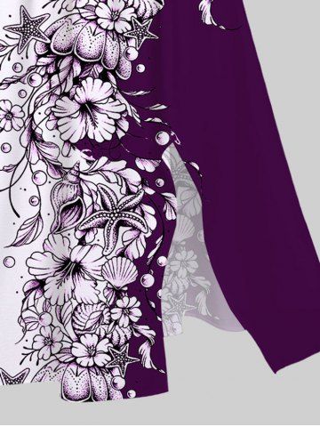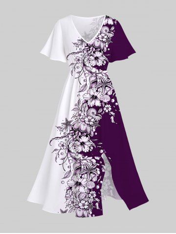 Robes Graphiques > Plus Size Contrast Colorblock Flowers Leaf Print Split Hawaii Midi Dress