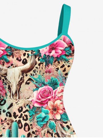 Plus Size Cow Head Cactus Flower Leopard Ethnic Graphic Print Backless Hawaii A Line Tank Dress - Multi-a - 2x