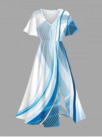 Robes Graphiques > Plus Size Curve Light Beam Print Split Midi Dress