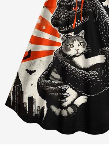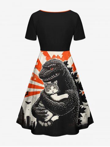 Robes Graphiques > Plus Size Dinosaur Cat Print Cinched A Line Dress