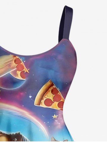 Plus Size Dinosaur Pizza Rainbow Print Hawaii Tank Dress - Pourpre - Pourpre