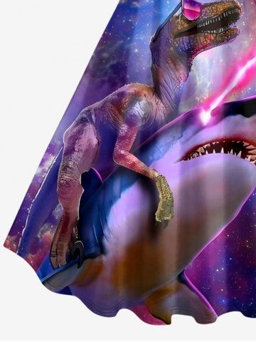 Plus Size Dinosaur Shark Ombre Galaxy Print Hawaii A Line Dress - Violacé Rouge - L