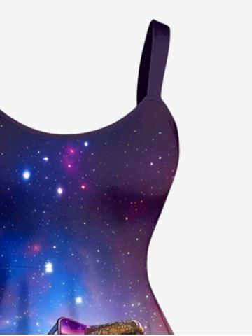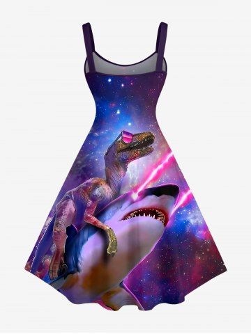 Plus Size Dinosaur Shark Ombre Galaxy Print Hawaii A Line Dress - Violacé Rouge - 1x