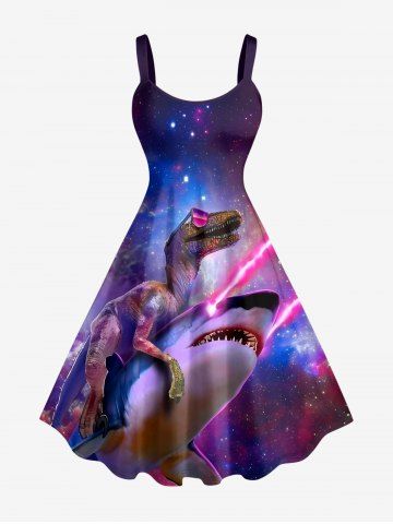 Robes Graphiques > Plus Size Dinosaur Shark Ombre Galaxy Print Hawaii A Line Dress