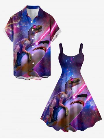 Plus Size Dinosaur Shark Ombre Galaxy Print Hawaii A Line Dress - Violacé Rouge - 2x