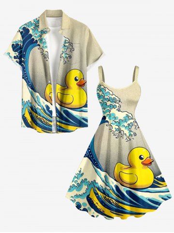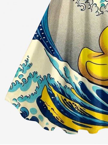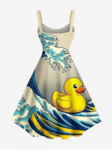 Plus Size Duck Sea Waves Print Hawaii A Line Dress - Jaune - Jaune