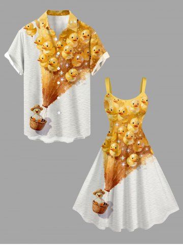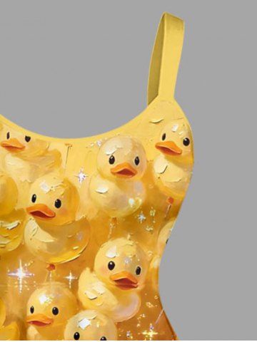 Plus Size Ducks Hot Air Balloon Glitter 3D Print Hawaii Tank Dress - Jaune - Jaune