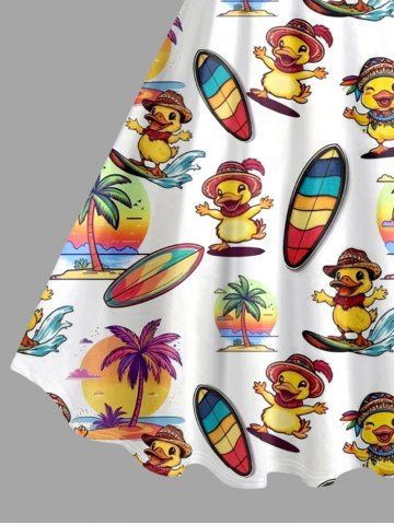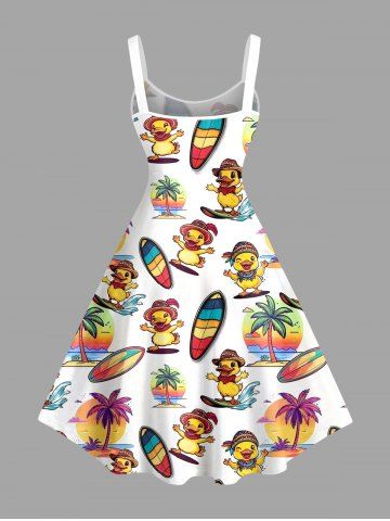 Plus Size Ducks Surfing Board Coconut Tree Print Hawaii Tank Dress - Blanc - Blanc