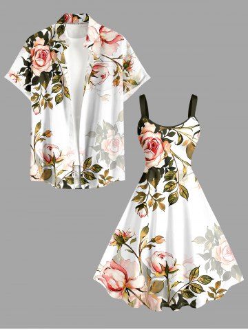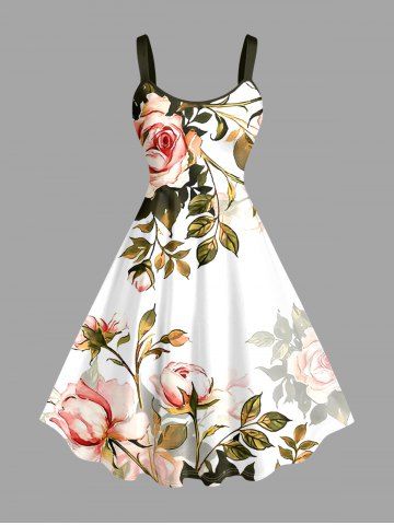 Robes Graphiques > Plus Size Flower Leaf Branch Ombre Print Hawaii A Line Dress