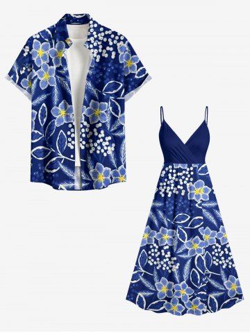 Robes Graphiques > Plus Size Flower Leaf Branch Print Hawaii Surplice A Line Cami Dress