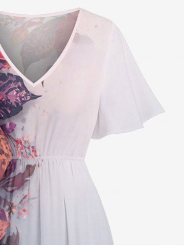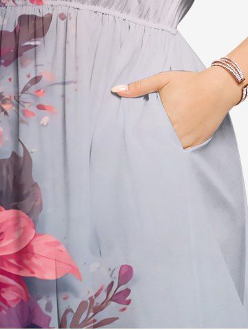Plus Size Flower Leaf Ombre Print Hawaii Split Pocket A Line Midi Dress - Rose Vif - L