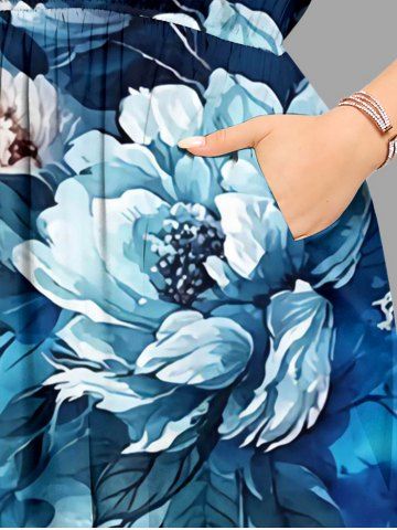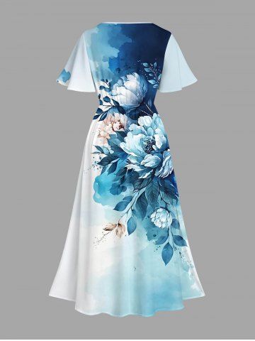 Robes Graphiques > Plus Size Flower Leaf Painting Splatter Print Split Hawaii Midi Dress