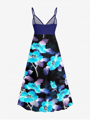 Robes Graphiques > Plus Size Flower Leaf Print Hawaii Surplice A Line Cami Dress