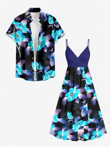 Plus Size Flower Leaf Print Hawaii Surplice A Line Cami Dress - Pers - 1x