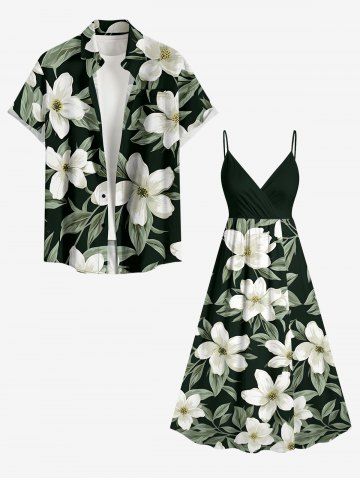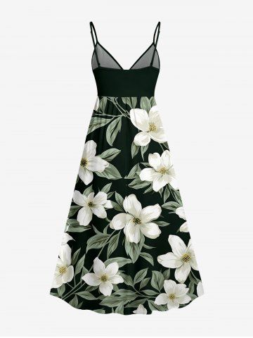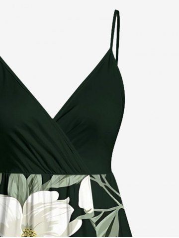 Plus Size Flower Leaf Print Surplice Hawaii Cami Dress - Vert Profond - L