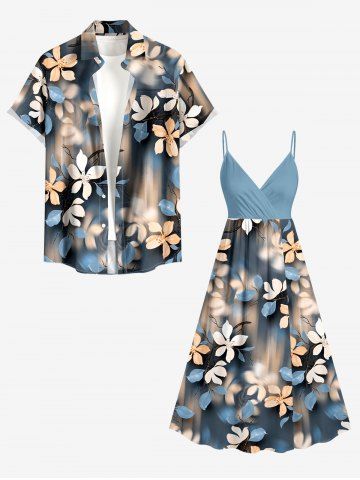 Plus Size Flower Ombre Print Hawaii Surplice A Line Cami Dress - Bleu-gris - 1x