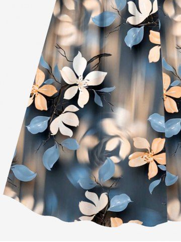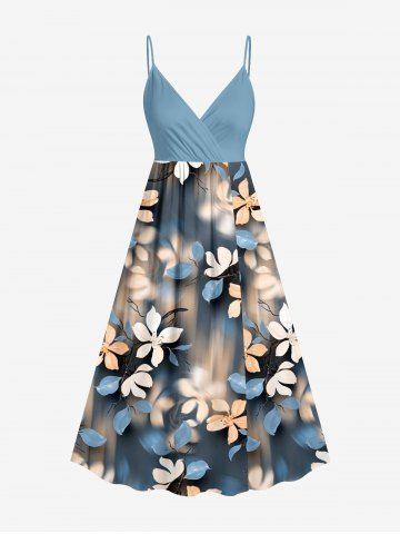 Plus Size Flower Ombre Print Hawaii Surplice A Line Cami Dress - Bleu-gris - 2x