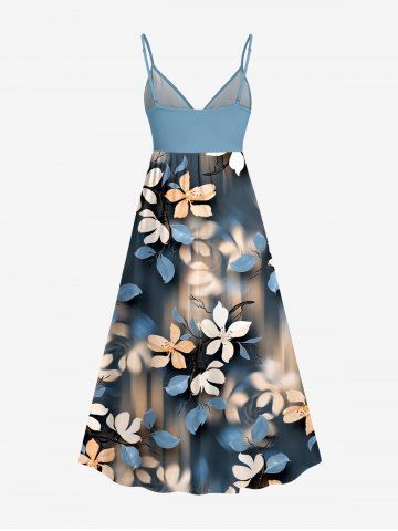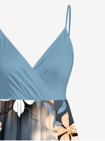 Plus Size Flower Ombre Print Hawaii Surplice A Line Cami Dress - Bleu-gris - 3x