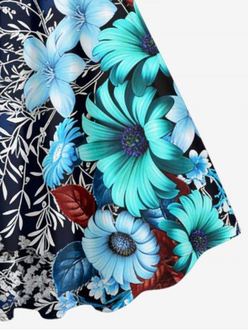 Plus Size Flower Plant Branch Print Hawaii A Line Dress - Bleu Profond - L