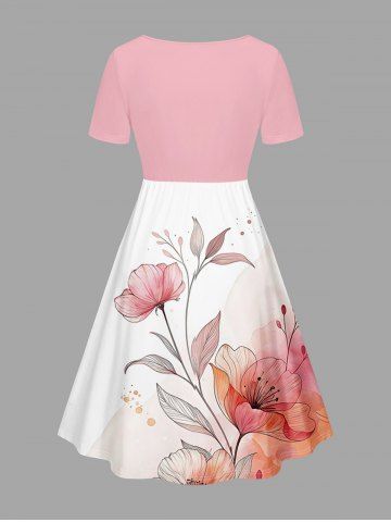 Plus Size Flowers Leaf Ombre Print Cinched Hawaii Dress - Rose - Rose