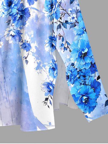 Plus Size Flowers Leaf Paint Splatter Print Split Hawaii Midi Dress - Bleu - Bleu