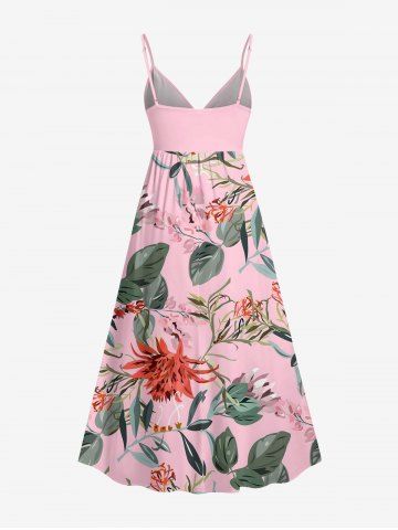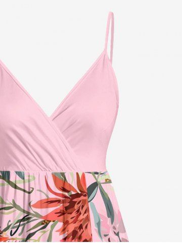 Plus Size Flowers Leaf Print Surplice Hawaii Cami Dress - Rose - Rose