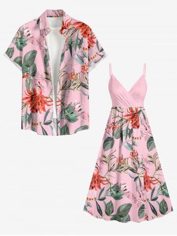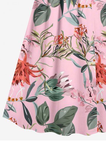 Robes Graphiques > Plus Size Flowers Leaf Print Surplice Hawaii Cami Dress