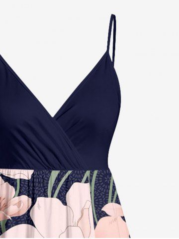 Robes Graphiques > Plus Size Flowers Leaf Print Surplice Hawaii Midi Dress